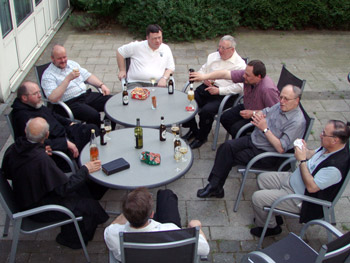 Gemütliches Beisammensein nach getaner Arbeit; in der Mitte der Kapitelvikar fr. Klemens M.