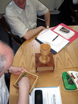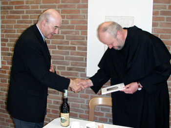 P. Provinzial überreicht Bischof Genn eine Flasche Ghina vom Monte Senario sowie die Generalkapiteldokumente 2007