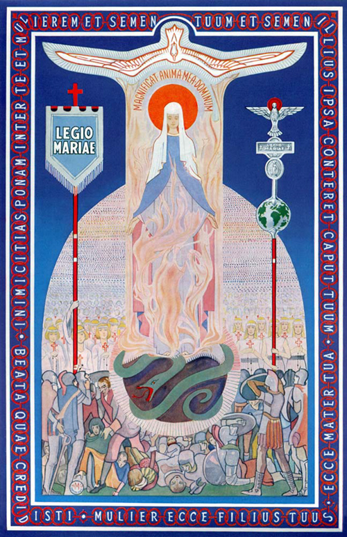 Legion Mariens „Die Legion Mariens ist eine Gemeinschaft von Katholiken, die sich mit Erlaubnis der Kirche und unter der machtvollen Führung der Unbefleckt Empfangenen zu einer Kampftruppe zusammengeschlossen haben: sie wollen sich einsetzen in dem Krieg, den die Kirche zu jeder Zeit gegen die Kräfte des Bösen in der Welt führt.“