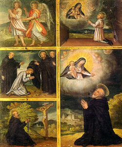 In dieser Legende wird mit wenigen Bildern aus dem Leben Peregrins gezeigt, mit welchen Zielen die Marienverehrung in Verbindung gebracht werden sollte. Der junge Peregrin ist ein Mann, der das Heil erlangen möchte. Für eine christliche Person ist es ein selbstverständliches Ziel. Jedoch Peregrin erkennt, dass er dabei eine Hilfe braucht, die ihm von den Menschen scheinbar nicht angeboten werden kann. Sein Weg der Suche ist das Gebet. Vor dem Bildnis Mariens erhält er eine Antwort, die ihm eine weitere Lebensorientierung ermöglicht. Es ist kein Zufall, dass die Jungfrau Maria sich als die Mutter des Gekreuzigten erkennen lässt, denn für Peregrin bedeutet der ersehnte „Weg der Seligkeit“ eine radikale Nachfolge Christi, die von ihm auch die Annahme des Kreuzes verlangen wird; einige Jahre später wird er nämlich mit einem Fußtumor konfrontiert. Die Weisungen Mariens nimmt Peregrin ernst; schließlich ist sie die Mutter des gekreuzigten Herrn, den er anbetet. Hiermit stellt die Legende Maria als Wegweiserin dar, die den Menschen den Willen Gottes vermittelt. Wie es die Serviten in Siena bei der Ankunft Peregrins feststellen konnten, erreichen viele, die sich danach sehnen, durch Maria den Zugang zum Heil. Dieser Zugang darf durchaus als ein konkreter Ort und Dienst in dieser Welt gesehen werden, auf dem und durch den jeder Mensch bestrebt ist, seinem Leben und dem der anderen einen Sinn zu geben. In diesem Zusammenhang ist Peregrin als Pilger zu sehen, der unterwegs zur ewigen Seligkeit sich berufen fühlt, Christus in der Gemeinschaft der Diener Mariens nachzuahmen. Durch die Übernahme des schwarzen Ordenshabits, der an die Schmerzen Mariens erinnern soll, begibt sich Peregrin in die Schule der Mutter des Gekreuzigten. Sie wird für ihn sowohl Lehrerin als auch Begleiterin in der Nachfolge Christi. Beeindruckend ist, dass die Legende im schwierigsten Lebensmoment Peregrins keine Erwähnung über seinen Bezug zu Maria macht. Als er nämlich mit seiner Krankheit kämpft, wendet er sich direkt an den Gekreuzigten; er bittet ihn um die Gnade der Heilung, die ihm auch gewährt wird. Damit spiegelt diese durchaus christozentrische Legende auch jene Überzeugung wider, die der Apostel Paulus geäußert hat: „Das Gesetz hat uns in Zucht gehalten bis zum Kommen Christi, damit wir durch den Glauben gerecht gemacht werden. Nachdem aber der Glaube gekommen ist, stehen wir nicht mehr unter dieser Zucht“ (Gal 3,24-25). Ähnlich wie das Gesetz, hat auch Maria - sobald der Mensch Christus persönlich begegnet ist - ihre erziehende Aufgabe erfüllt. Allerdings lässt die Legende das Leben Peregrins in der Gegenwart Mariens mit folgendem Kommentar enden: „Seine Seele wurde (...) von der Jungfrau Maria in die Seligkeit des Paradieses geführt.“ fr. Fero M. Bachorík OSM |